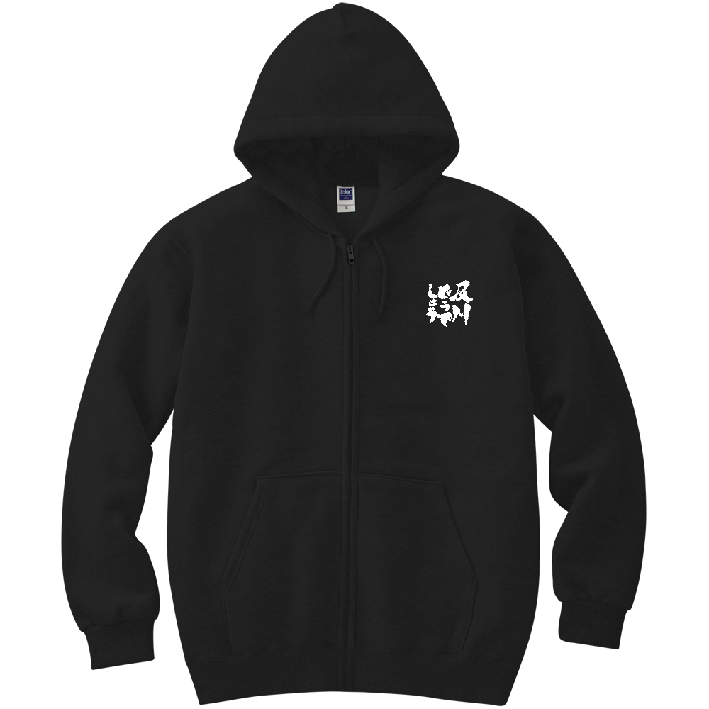 背中の印刷はあえてフードで少し隠れそうな位置に配置しています。